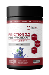 Friction Pre entreno aumenta la fuerza, mejora los tiempos de recuperación, voluminiza e hidrata las células musculares e intensifica la energía.